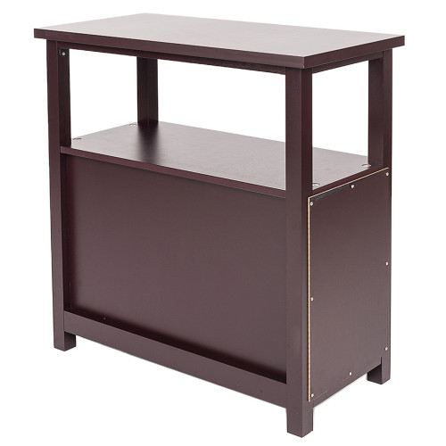 This Side Table uses high quality MDF material, which is eco-friendly and makes it sturdy. Because of simple design, it is no need for you to assemble. With transitional style, this Side Table can decorate your house. In addition, it also feature a convenient single shutter door design with side shelves and a storage shelf inside the cabinet. You can place objects in two drawers and top of the drawers. Therefore, this Side Table can store a lot of stuff and help you save much space.