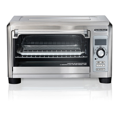 SKU: 6456259Model:31243The Hamilton Beach® Professional Sure-Crisp® Digital Air Fryer Countertop Oven has a Sure-Crisp® function* that powerfully circulates air around food for crispy results. 7 versatile cooking settings include a temperature probe for precise results.FeaturesSURE-CRISP® AIR FRY FUNCTION CIRCULATES AIR POWERFULLY AROUND FOOD FOR CRISPY RESULTSThis air fryer* toaster oven gives you crisp, even browning with little to no oil, making it ideal for fries, chicken wings, steaks, fish, vegetables and more.7 VERSATILE SETTINGS PLUS PROBE FOR MULTI-FUNCTIONAL COOKINGGo from air frying chicken on Friday to cooking beef roast with the probe on Sunday. Additional settings for toast, bagel, pizza, bake, broil and keep warm provide cooking versatility.COOK FAMILY-SIZE MEALS WITH THE EXTRA-LARGE 1 CU. FT. CAPACITYThe large countertop oven lets you cook a 12" pizza, 6 lb. chicken, 6 slices of toast or a 9" x 13" pan. It also has 3 rack positions to accommodate a variety of cooking needs.PREMIUM DIGITAL CONTROLS FOR PRECISE COOKINGThe intuitive control panel with LCD screen displays which setting you selected, how many minutes are left on the timer and the oven’s temperature. When the cooking time is up, the oven shuts off.TOASTER OVEN AIR FRYER COMBO WITH EXCELLENT COOKING AND TOASTING PERFORMANCEQuality quartz heating elements, 1500 watts and powerful convection fan provide precise, accurate temperatures from 200 to 450° F and result in even cooking without hot spots.