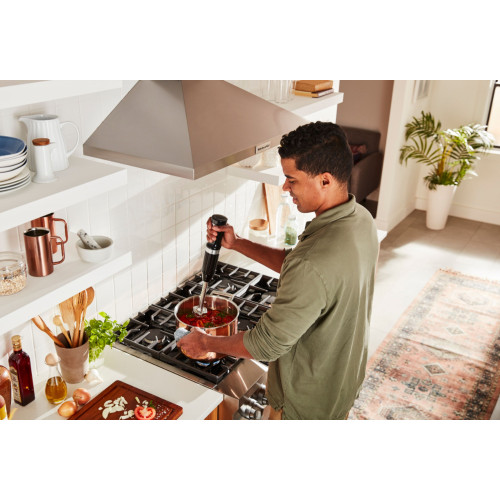 All the Power You Expect, without the Cord. Go where ambition takes you with the Cordless Hand Blenderfrom KitchenAid. Designed with a powerful rechargeable Lithium-Ion Battery, the new cordless hand blender delivers optimal runtime and performance, so you can cook wherever*, whatever and however you choose. Blends 25 bowls of soup on a full charge.** *Indoor use only** Based on 12 ounce bowls (354 ml), 7 batches, Tomato Basil Soup. All the power you expect without the cord.